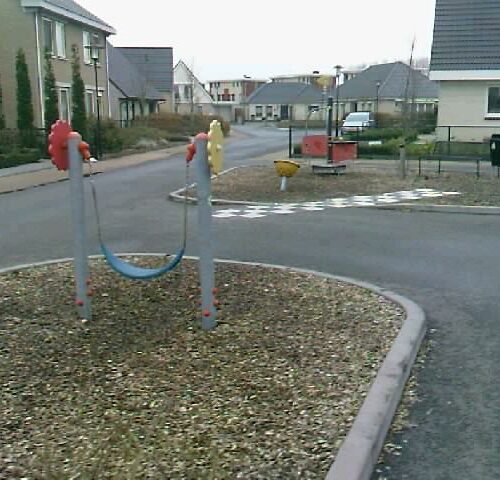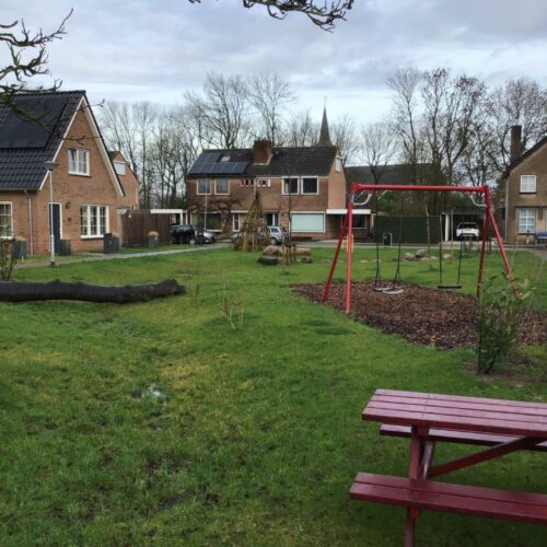 Kleine speelvoorziening met speelhuisje en peuterschommel!