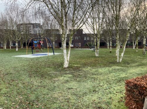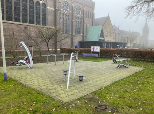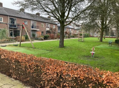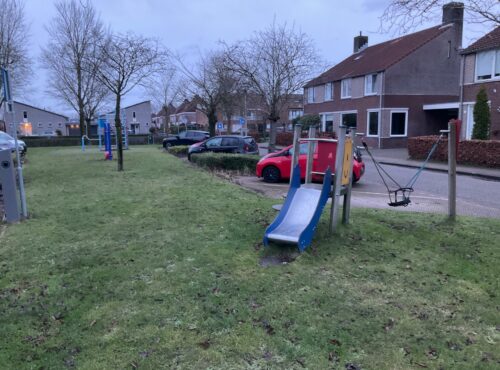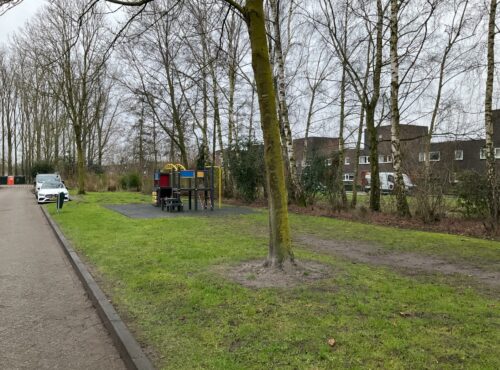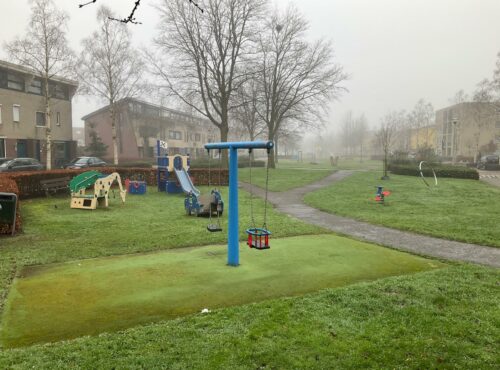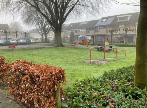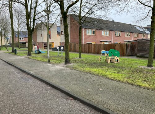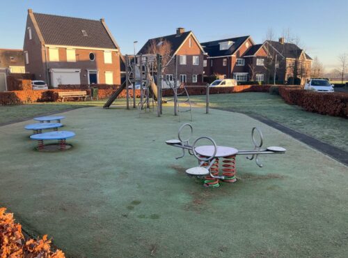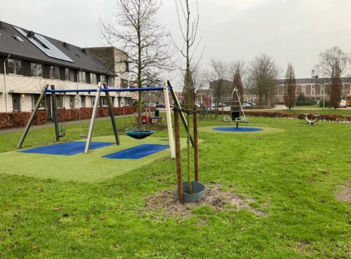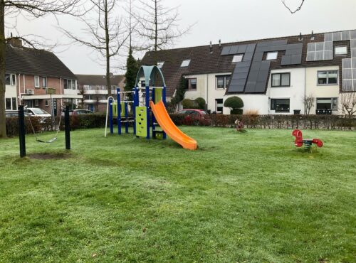 Speelveld Tamboerhof in Etten-Leur met groot klimtoestel, springstenen en een grote wip voor meerdere kinderen. Deze plek is geschikt voor... lees verder