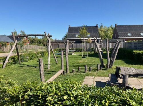 Houten klimtoestel met glijbaan en ander duurzaam speelgoed voor in huis
