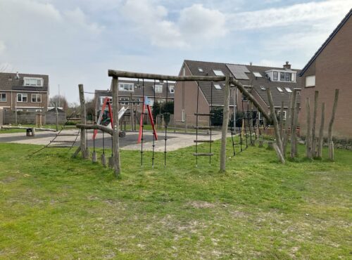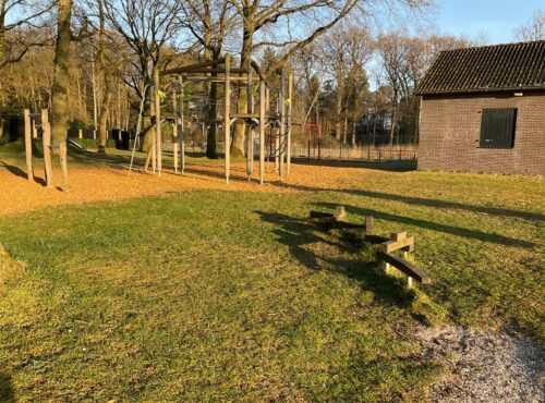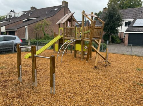 Houten klimtoestel met glijbaan en ander duurzaam speelgoed voor in huis